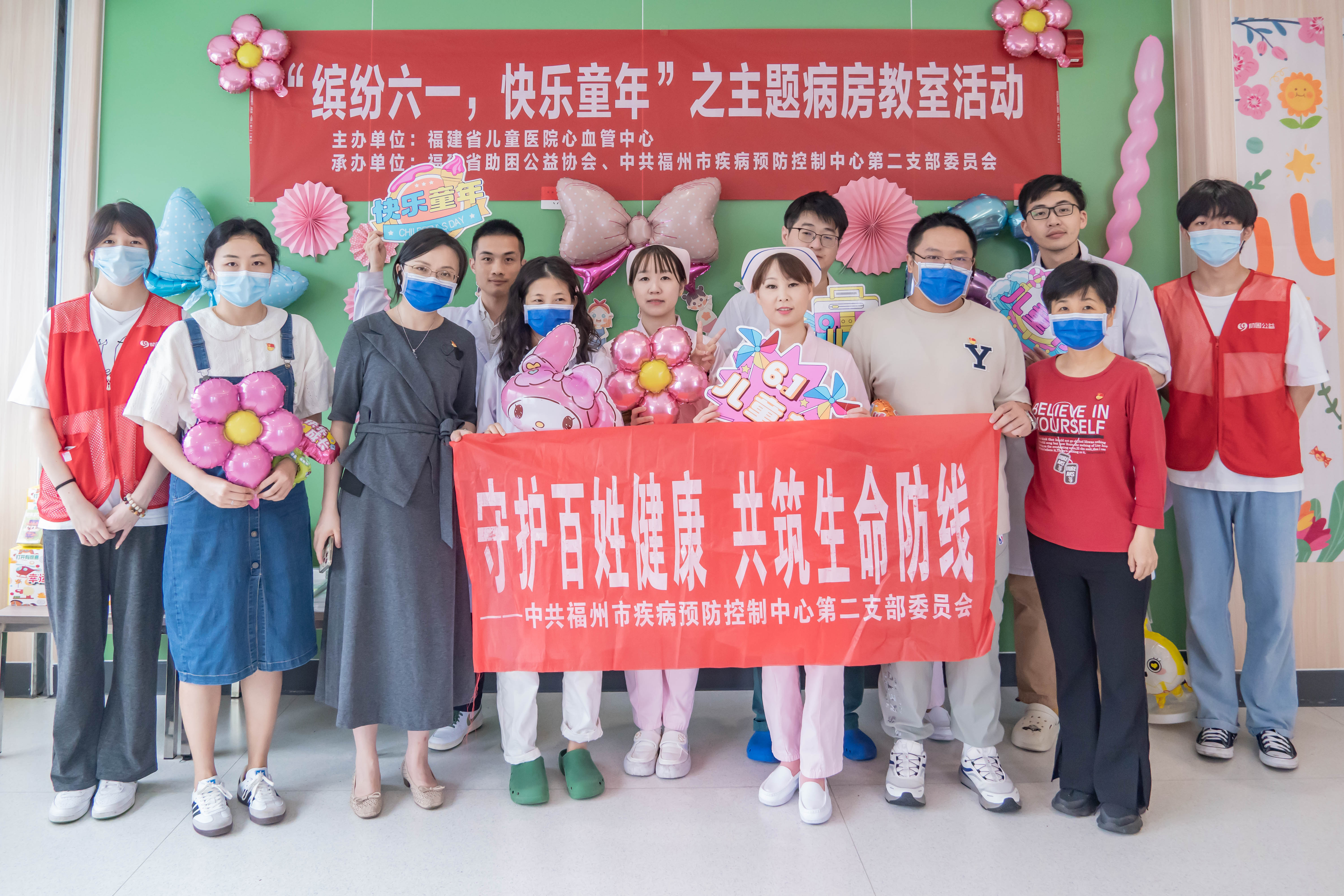5月31日上午,福州市疾控中心第二党支部和福建省助困公益协会的志愿者们早早来到福建省儿童医院心血管中心活动室,为小朋友们布置六一活动现场。五彩缤纷的彩带、色彩斑斓的气球,还有精心准备的“微心愿”书籍、小乐高积木、国风团扇、扭扭棒等礼物,让原本略显沉闷的病房焕发出勃勃生机。